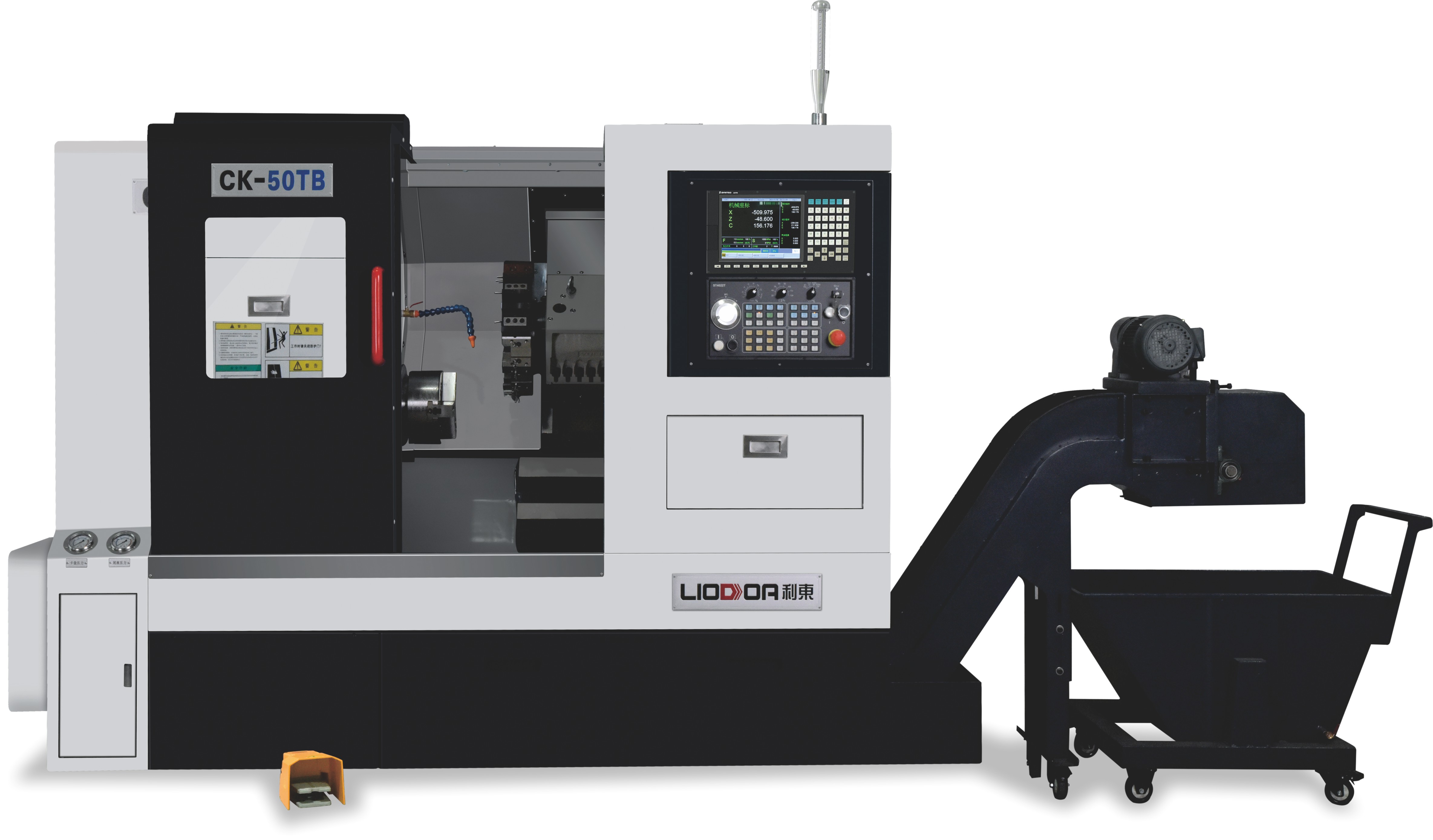 3.CK-50TB 硬轨全功能数车 A2-6箱体式主轴 标配8寸液压卡盘,80-12T伺服刀塔,液压尾座,最大加工长度400。排屑机。原型机为日本森精机。